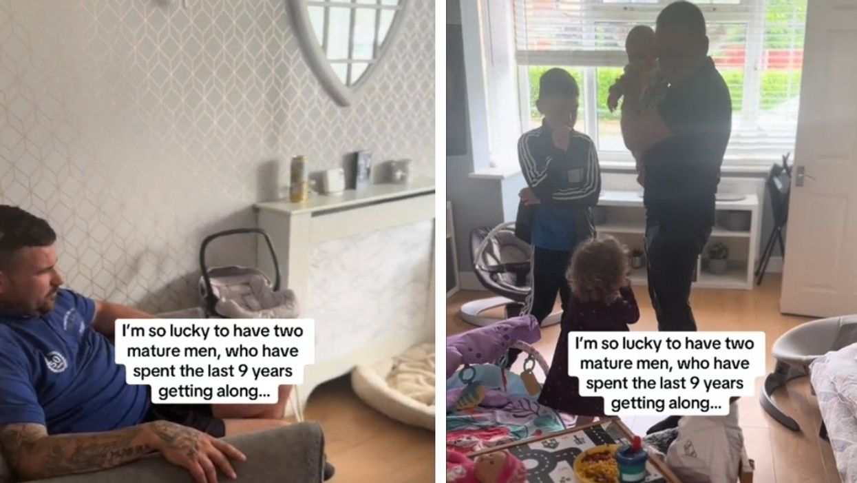 In the video, Mom’s ex-husband arrives to pick up their son for the weekend. Instead of making a quick exit, he steps inside to catch up with the boy’s stepdad and spend quality time with his ex-wife’s younger children. The wholesome interaction captured in the video is truly endearing.